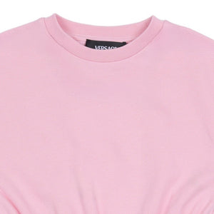 Adding designer style to casual days, this pink dress by luxury Italian label Versace is made in comfortable, mid-weight cotton jersey. An easy-to-wear, slip-on style, with a crew neckline and seamless capped sleeves, it is elasticated at the waist for a shaped silhouette. A contrasting red '9s Vintage logo motif adds a distinctive finish.