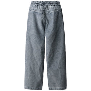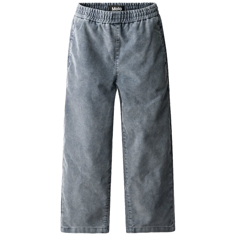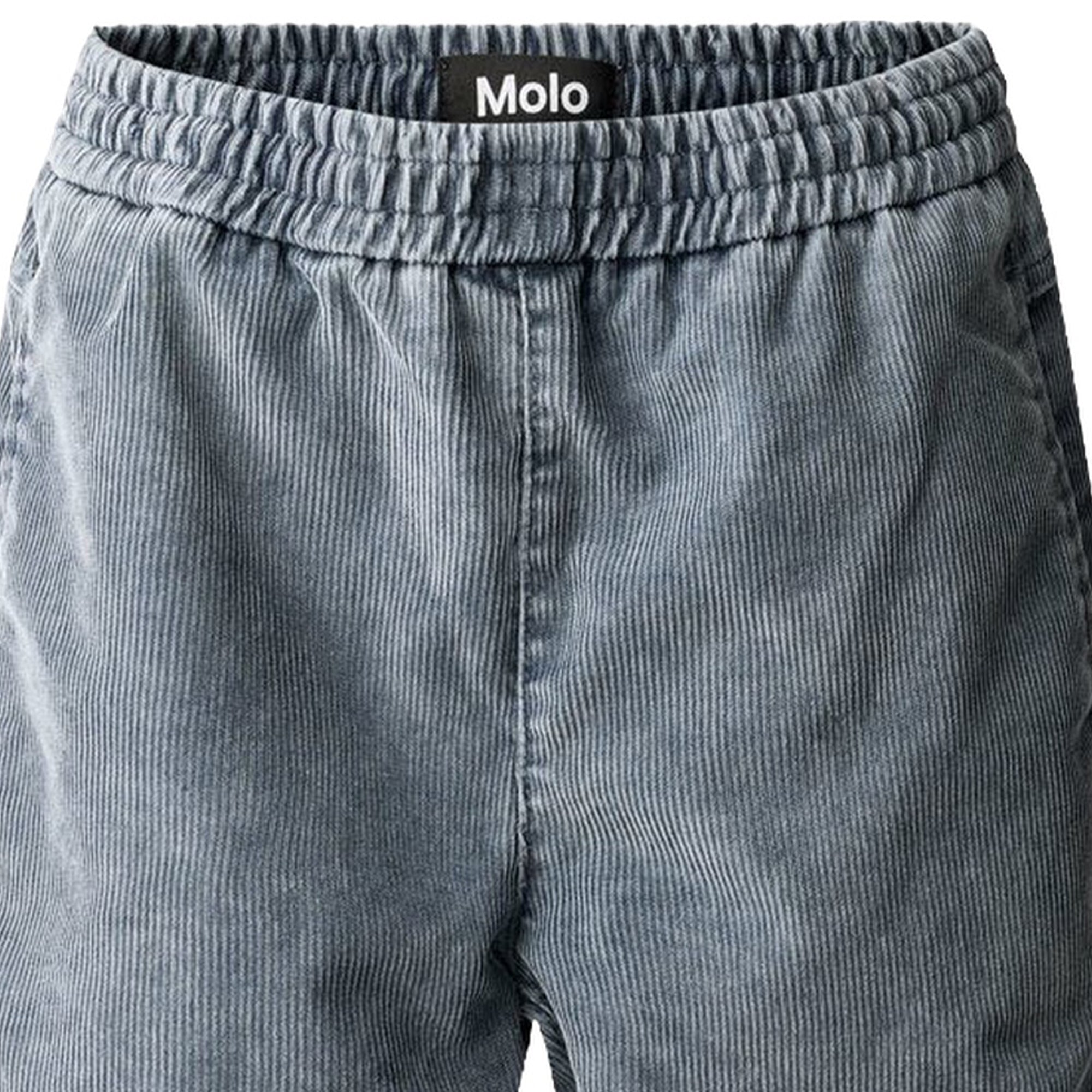 This Molo blue velvet pants with elastic waist, internal drawstring, side pockets and back pockets. The pants have a loose fit.