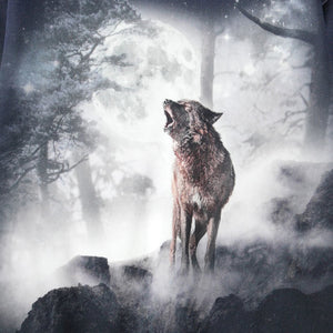This stunning Molo sweatshirt features a wolf howling under a massive full moon, set within a misty, dark forest landscape print.