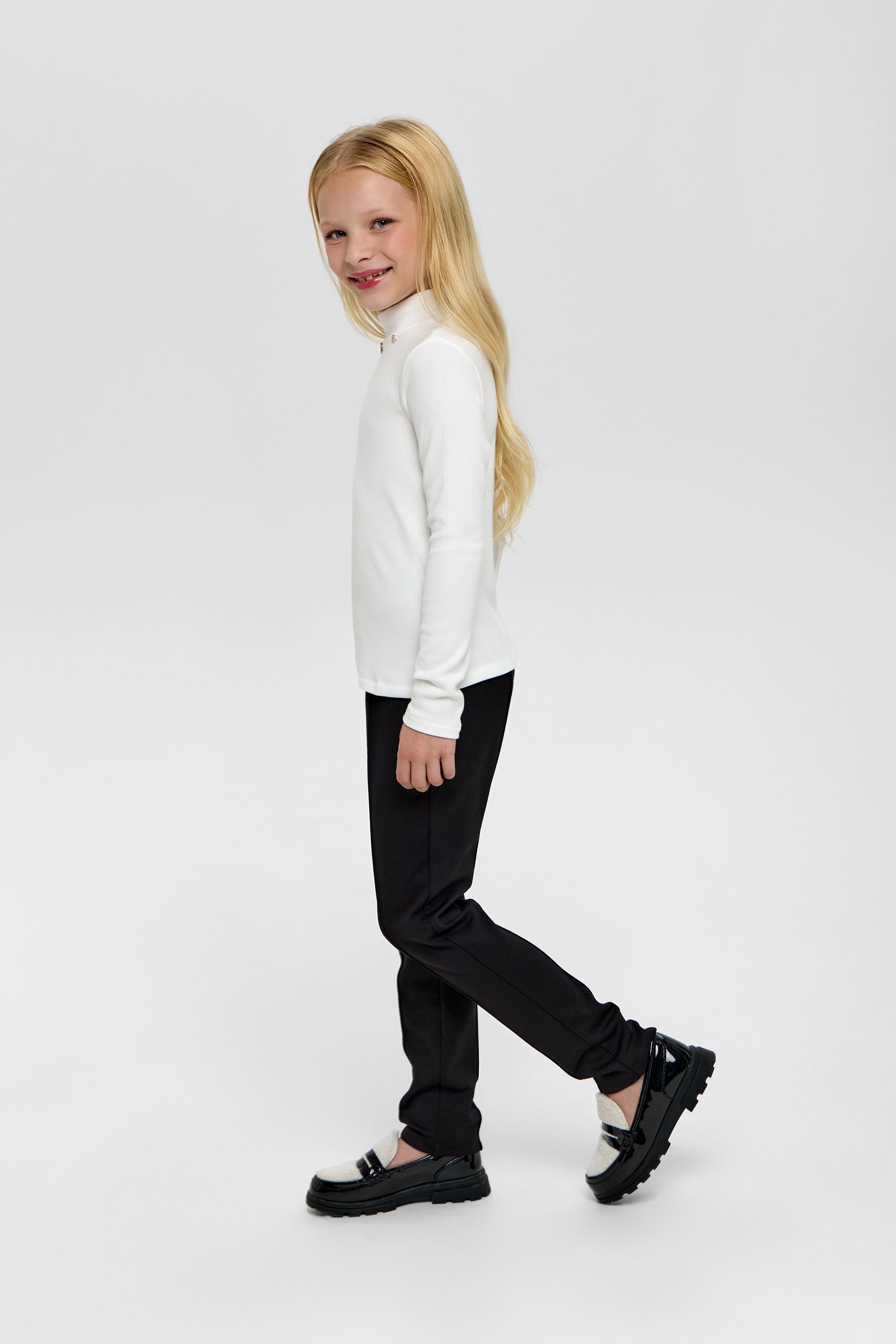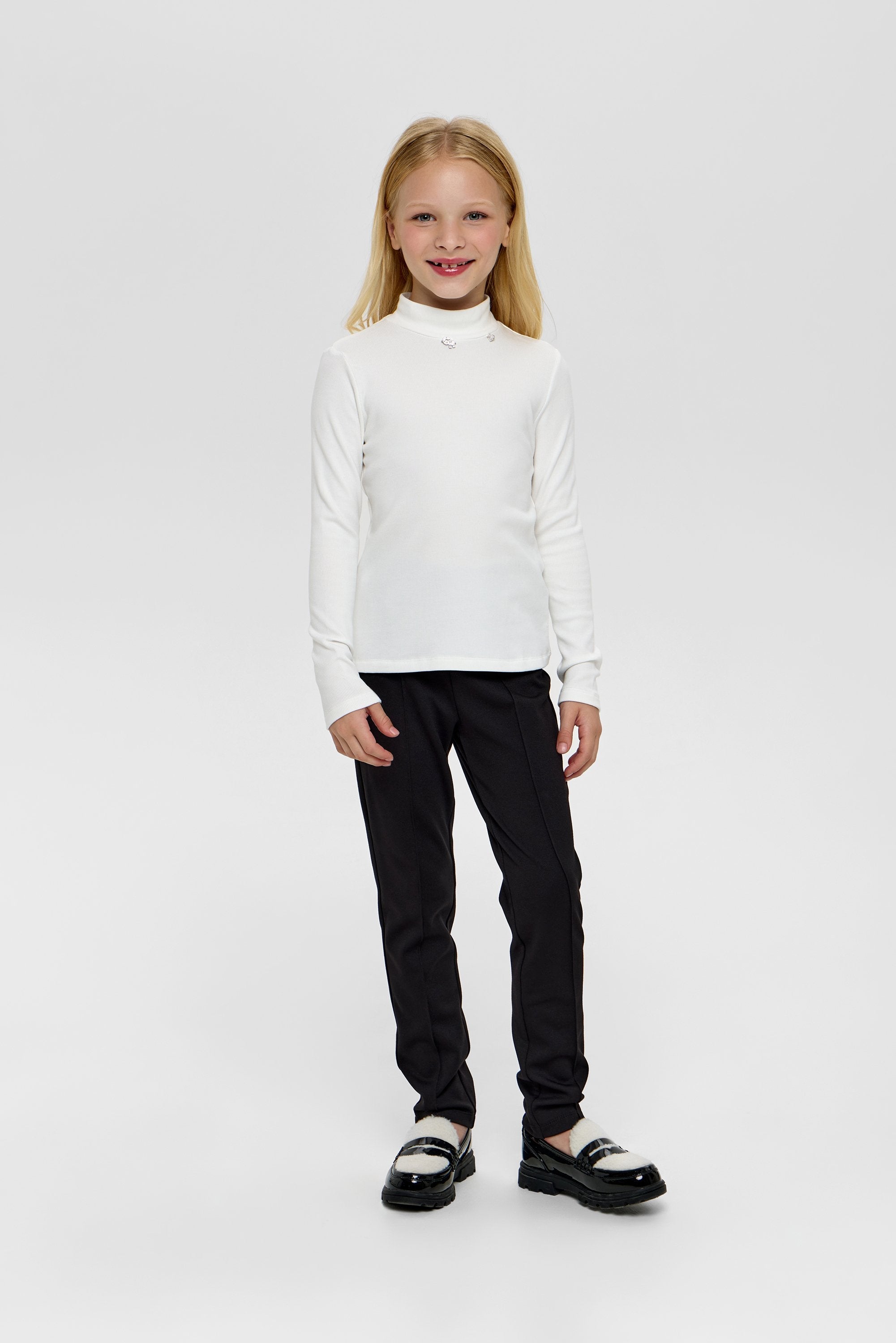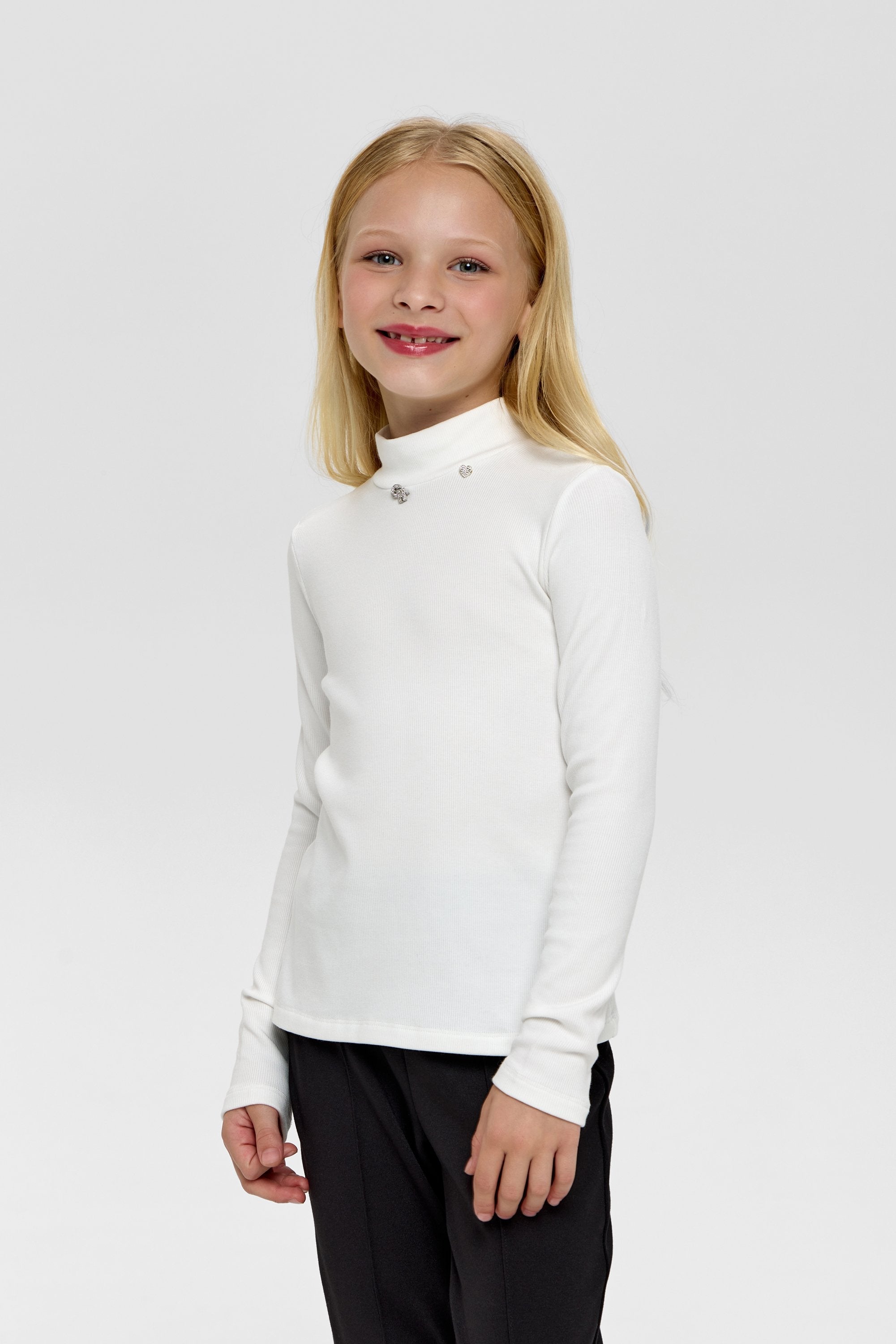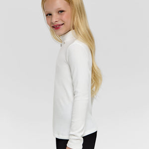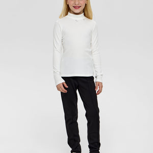This Ecru Turtleneck for girls combines understated elegance with cozy warmth. Its soft, neutral shade enhances versatile styling, while the fine knit fabric ensures comfort and a flattering fit. Perfect for layering or wearing alone, it offers a sophisticated staple for her wardrobe.