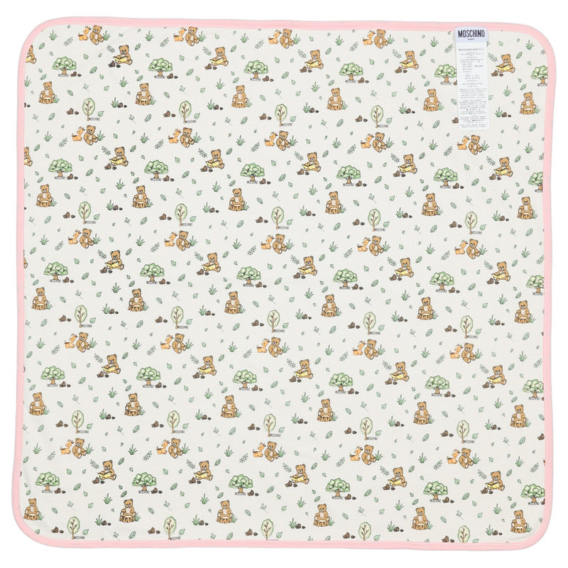 This Ultra-Soft Moschino Baby Blanket In Pink Cotton Offers Warmth And Comfort. It Features A Subtle "Moschino Baby" Patch, Making It A Luxurious Essential For Your Little One.