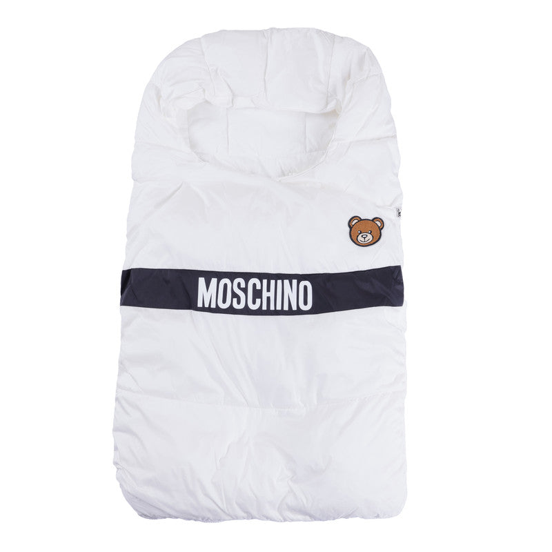 White logo-print padded sleeping bag with signature Teddy Bear motif.