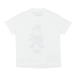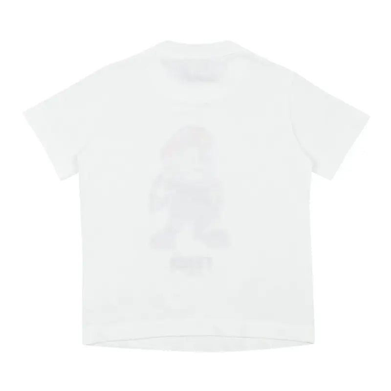White T-shirt by luxury Italian brand Fendi, made in soft cotton jersey. Cool and casual, it features a fun and playful FF-branded Fendi rabbit character on the front with a black rubberised Fendi logo underneath. Comfortable to wear this cute tee has short sleeves and a classic ribbed crew neck.