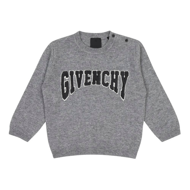 Woven from wool and cashmere fibres in a marl knit construction, this heather grey jumper by Givenchy Kids is designed for supreme comfort and warmth. To the front, an appliqué logo adds the final touch.