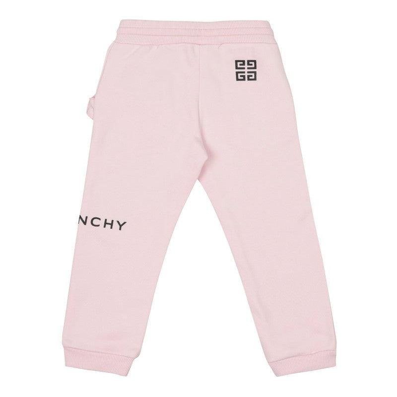 logo-print tapered joggers from Givenchy Kids featuring rose pink, cotton blend, logo print at the leg, drawstring waist, two side slit pockets and tapered leg.
