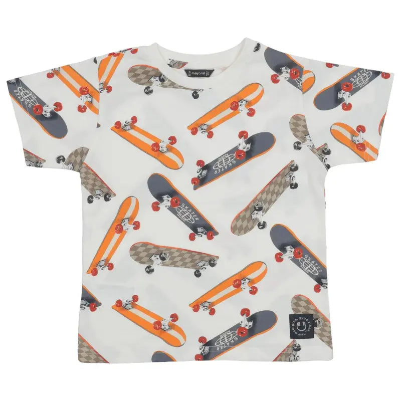 Elevate your little ones style with this playful half-sleeve tee. Featuring a bold, eye-catching print, its perfect for a touch of designer flair. Crafted from premium cotton, this piece is both comfortable and effortlessly cool.