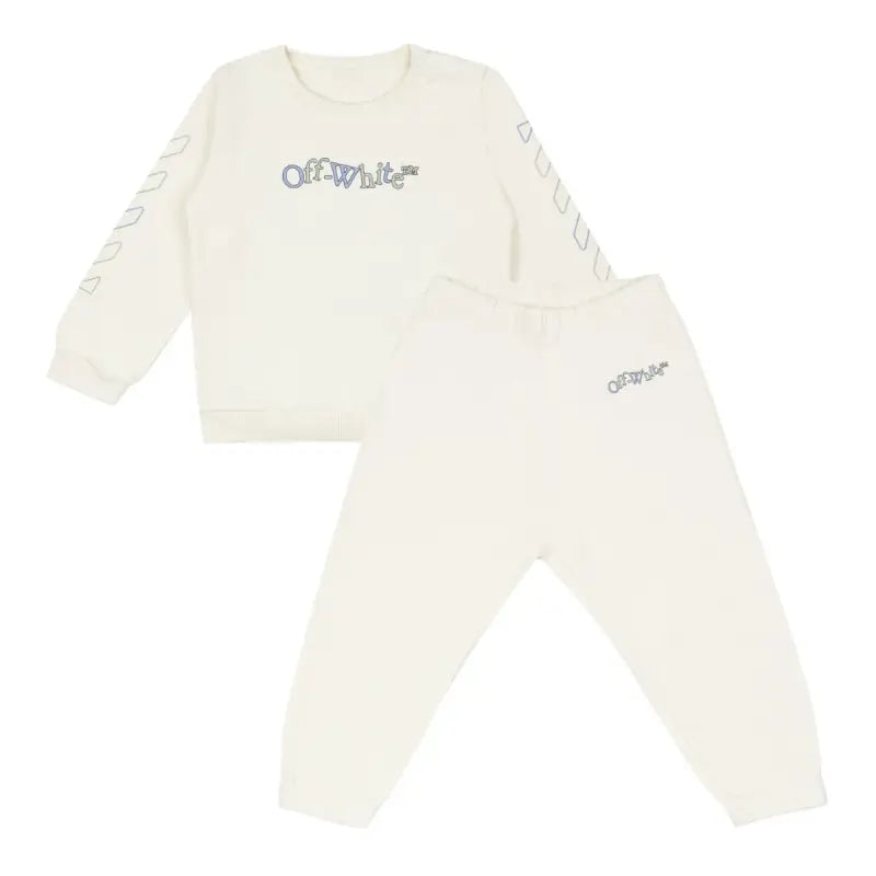 Off-White Bookish Crazy tracksuit white cotton jersey set of two Sweatshirt ribbed trim crew neck signature Diag-stripe print