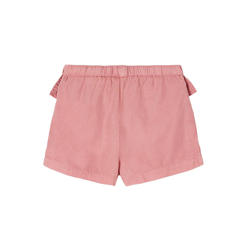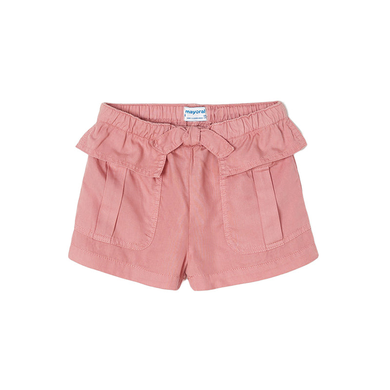Shorts for girl. Elasticated waistband for a better fit. Waistband with adjustable inner drawstring. Fresh and contemporary fabric with linen. Functional front pockets. Decorative elements: bow applique.
