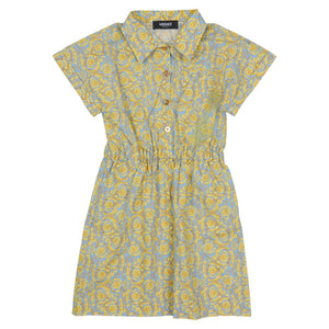 This short-sleeved cotton-poplin shirt dress features a Barocco Allover print and accent Medusa buttons.
