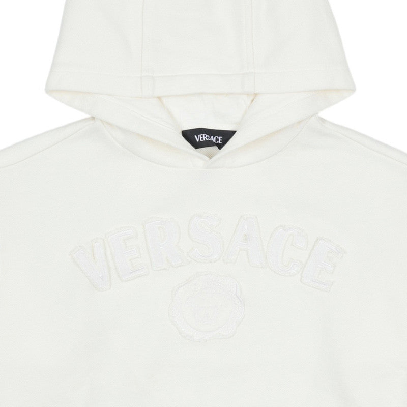 This off-white hoodie by Versace is a stylish choice, made in soft, mid-weight cotton jersey, it has a spacious pouch pocket and ribbed trims for a classic casual look. Adding instant brand appeal, there is an applique logo on the front featuring the designer's distinctive Medusa motif.