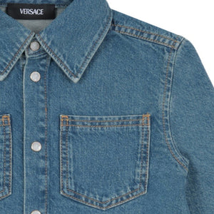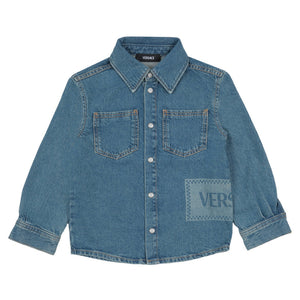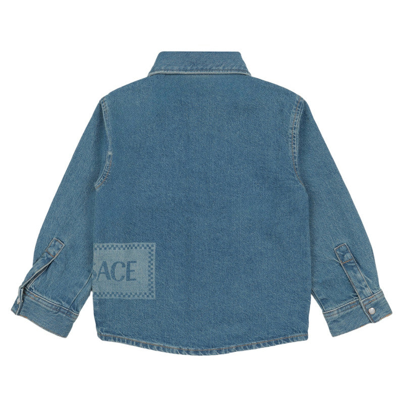 This long-sleeved denim shirt features a lasered '9s Vintage Logo on the side and three-dimensional mother-of-pearl snap buttons.