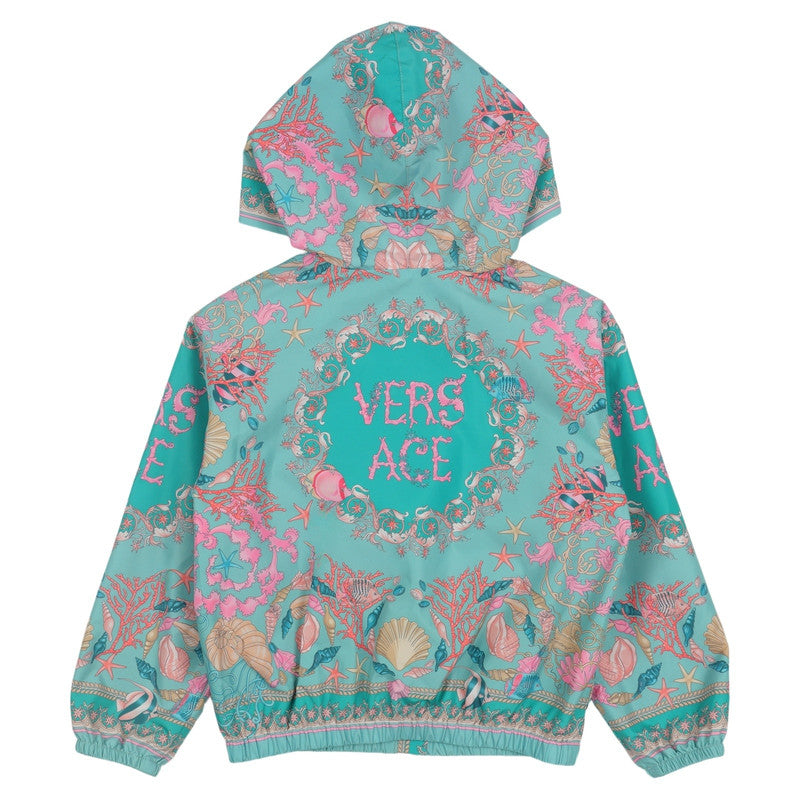 A hooded windbreaker jacket perfect to brave the storm on rainy days, it features an all-over Underwater Barocco print with ornate aquatic elements.
