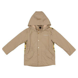 This padded, hooded parka jacket in cotton gabardine features a Versace Milano embroidery at the chest and a Barocco Foulard printed panel at the back. The outerwear style is accented by signature Medusa snap-buttons.