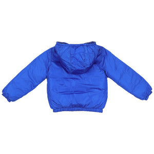 Vibrant blue and white reversible jacket for little by Versace, padded with luxurious down for superior warmth. Made in silky smooth fabric, one side features the brand's striking Barocco Foulard design, with a branded gold-tone zip. The reverse side is plain blue with a tonal Medusa logo embroidered on the chest. Both sides have useful pockets and a cosy hood.