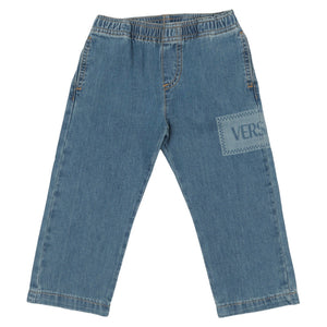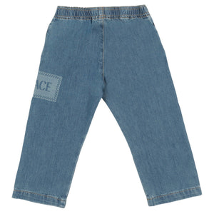 Denim trousers for little boys featuring a lasered '9s Vintage Logo motif on the side and a comfortable elastic waistband.