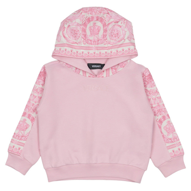 A cotton-jersey hooded sweatshirt featuring a Versace Logo thread-embroidery at the front and technical nylon inserts at the hood and sleeves in the Barocco Foulard print.