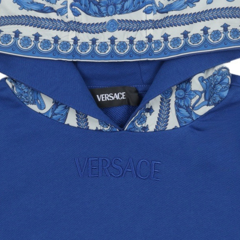 A cotton-jersey hooded sweatshirt featuring a Versace Logo thread-embroidery at the front and technical nylon inserts at the hood and sleeves in the Barocco Foulard print.