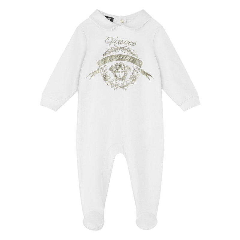 Versace White Laurel Crest Graphic Sleepsuit