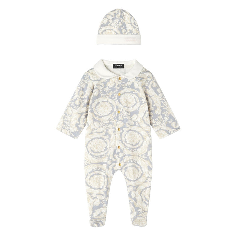Versace Grey Barocco Print Sleepsuit