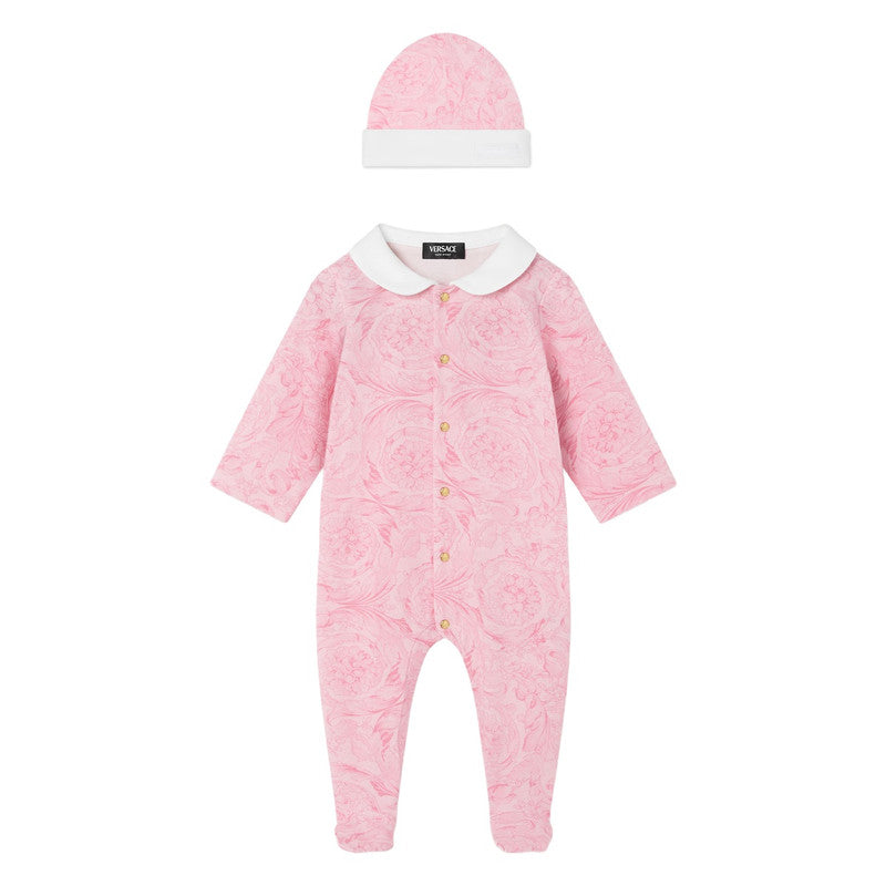 Versace Pink Barocco Print Sleepsuit