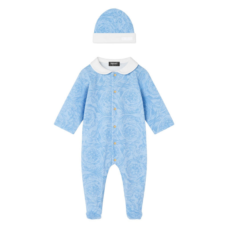 Versace Blue Medusa Graphic Print Sleepsuit Set