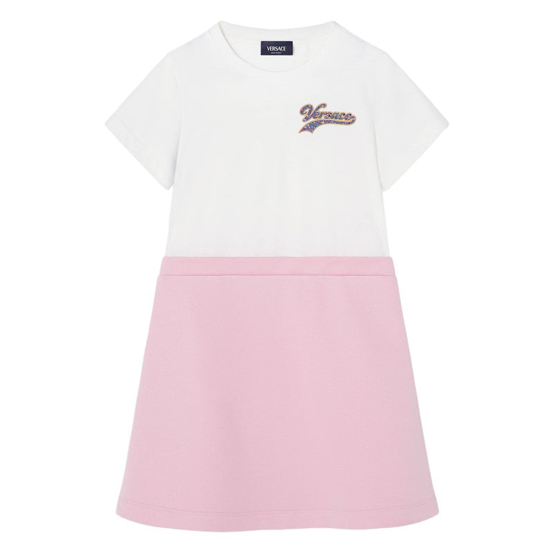 Versace White & Pink Campus Logo Graphic T-Shirt Dress