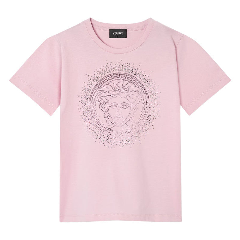 Versace Pink Medusa Crystal Embellishments T-Shirt