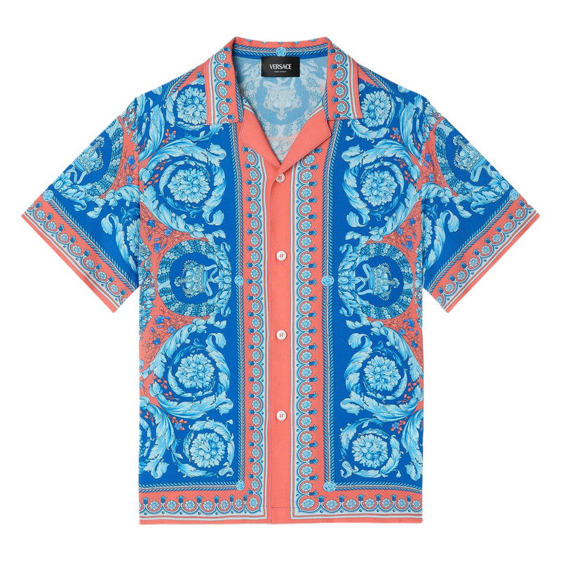 Versace Blue & Orange Shirt With Barocco Print
