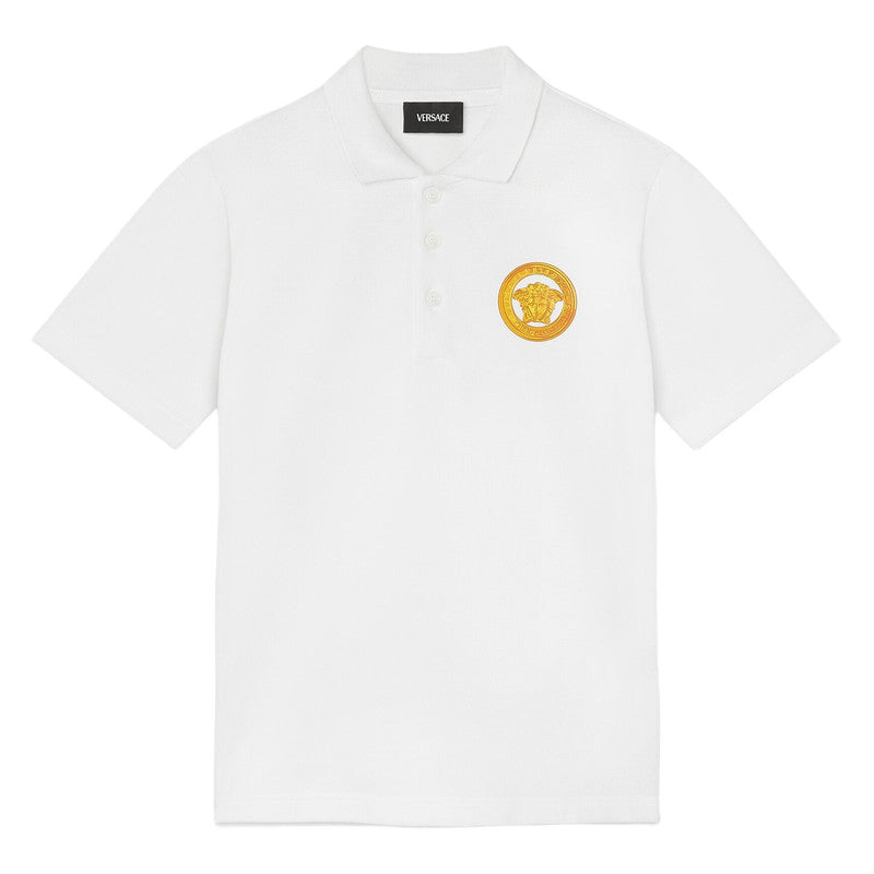 Versace White Pique Polo Shirt With Gold Medusa Logo
