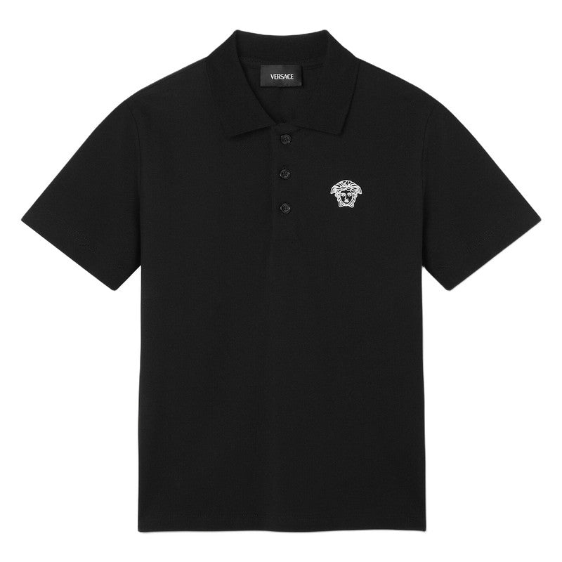 Versace Black Pique Polo Shirt With Embroidered Medusa Logo