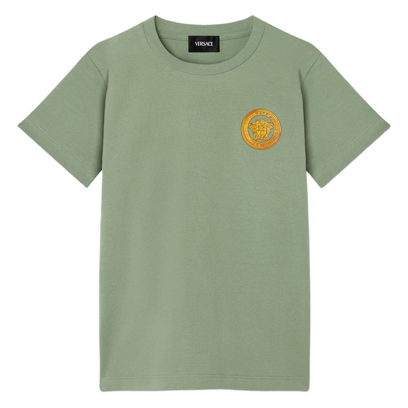 Versace Green T-Shirt With Gold Medusa Logo Print