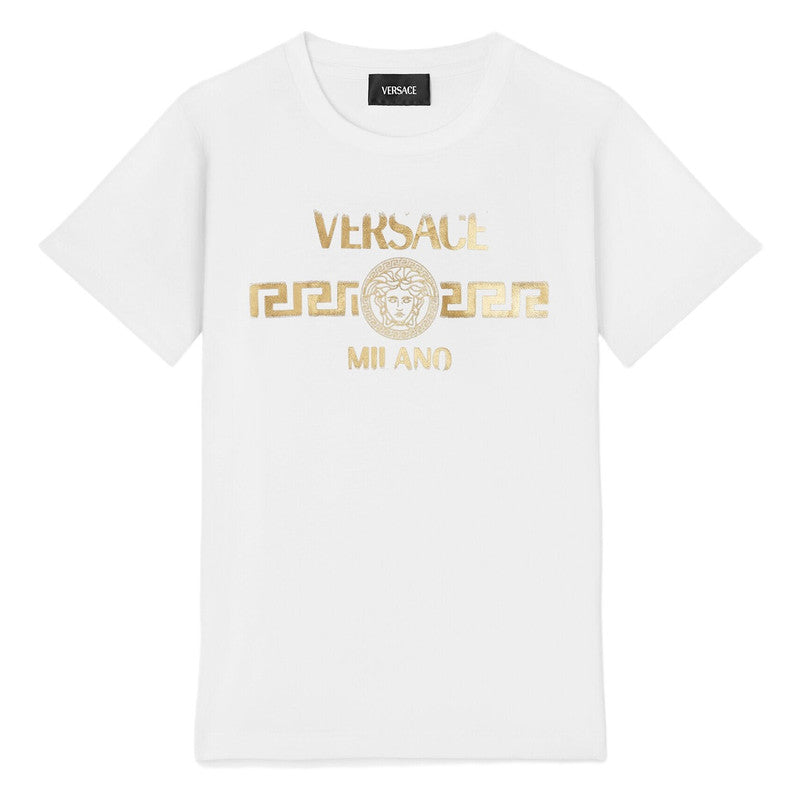 Versace White T-Shirt With Gold Foil Logo Print