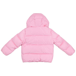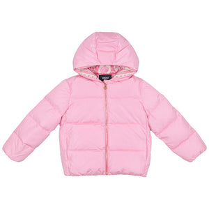 A warm, padded hooded puffer jacket featuring a Barocco Foulard printed lining and a Medusa zip puller.