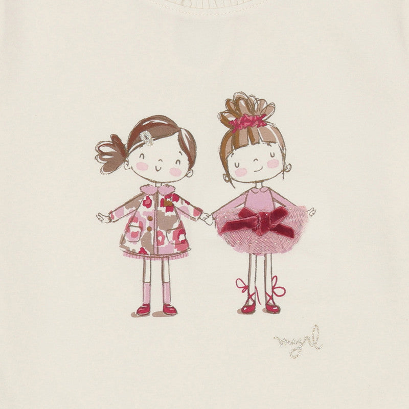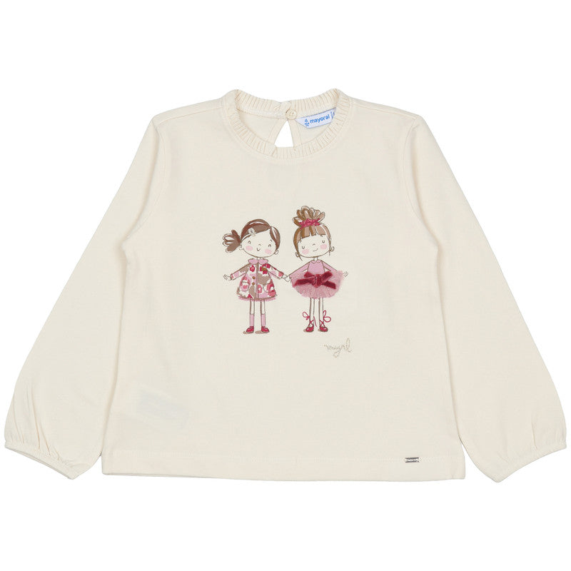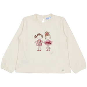 This Mayoral Off-White Girls' Long-Sleeve Top is a charming and delicate piece that combines everyday comfort with sweet, whimsical details.