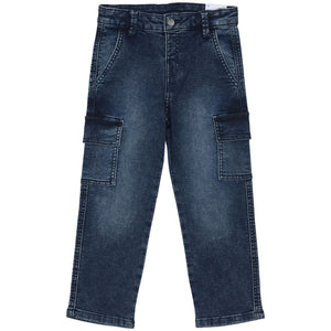 These Mayoral Blue Cargo Jeans for kids offer a rugged yet stylish look, combining the durability of classic denim with a contemporary utility design. Crafted with a medium-blue wash, they feature functional side cargo pockets that add a modern edge to any casual outfit.