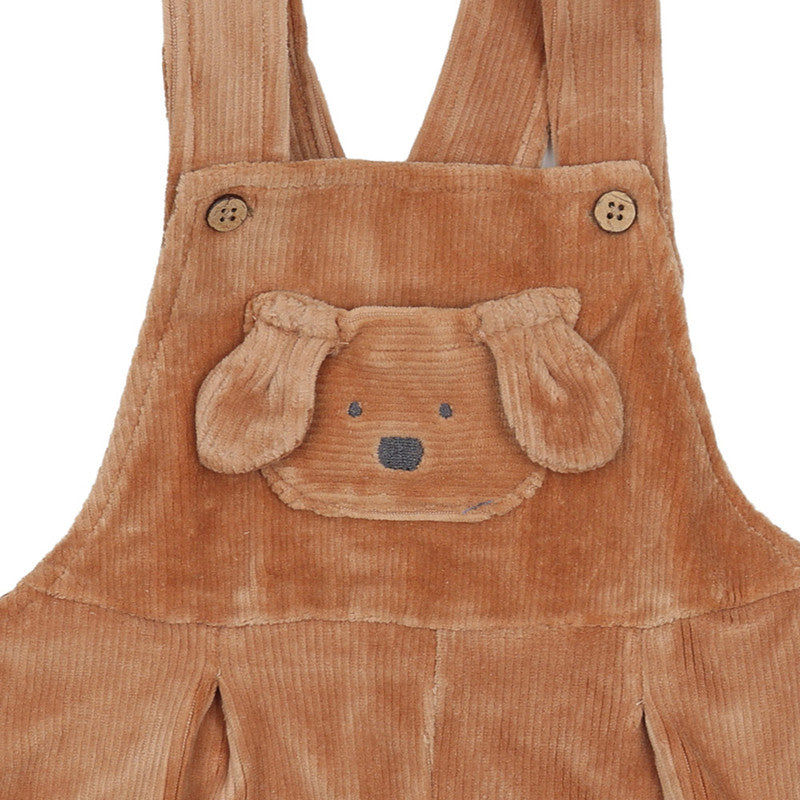 This charming Mayoral Brown Corduroy Dungaree for kids is a cozy and playful staple for any winter wardrobe. Crafted from soft, durable corduroy fabric in a warm tan shade, it features a sweet dog character appliqué on the chest bib, complete with floppy 3D ears.