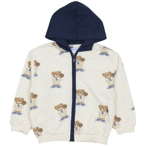 This stylish Mayoral three-piece set offers a complete and coordinated look for outdoor play. It features a green quilted gilet, a beige graphic sweatshirt, and black joggers designed for comfort and warmth.