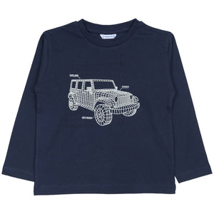 This classic Mayoral T-Shirt with Jeep Rubber Print is a durable and stylish choice for little adventurers who love all things off-road. Crafted in a versatile navy blue, this long-sleeved top is perfect for layering during cooler weather.