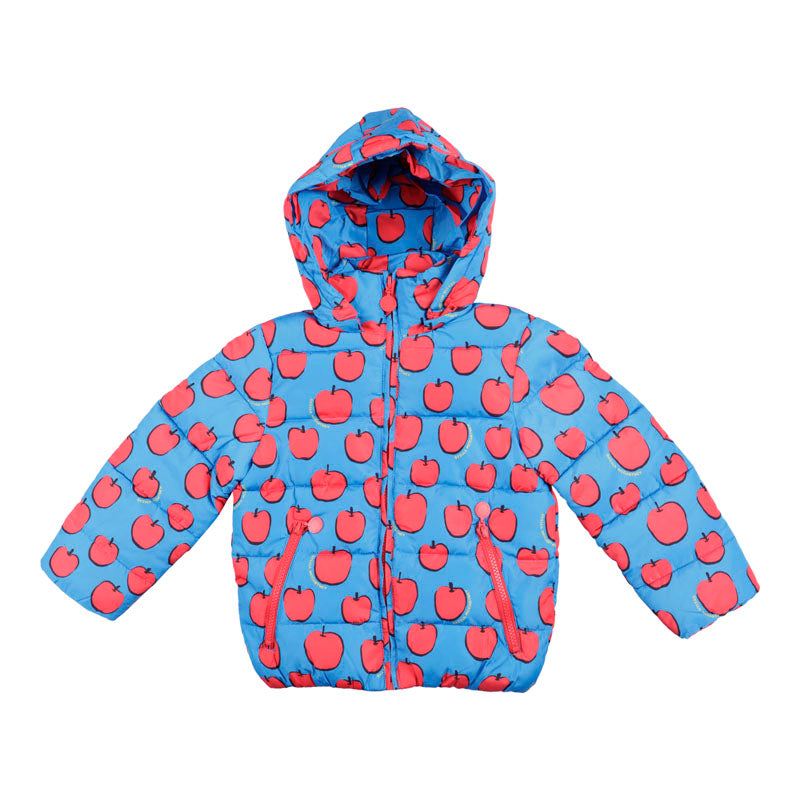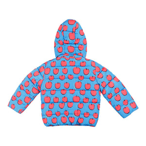 Apple Print Puffer Jacket by Stella McCartney with front zipper closure & side pockets.