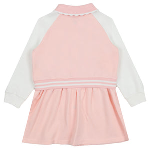The fashionable Fendi pink dress blending sportswear and style. This soft button-front dress with white contrast sleeves is perfect for playtime.