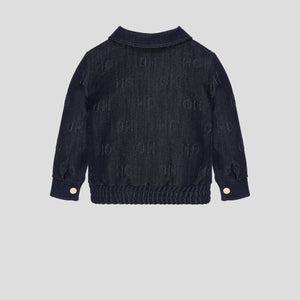 This sophisticated jacket and pant set in CH branded denim offers a refined style for baby girls. Crafted from premium denim, the set combines durability with a polished look. The jacket provides a structured yet comfortable fit, while the pants ensure ease of movement. Together, they create a timeless ensemble perfect for elevating your little one's wardrobe with understated elegance.