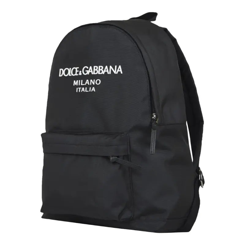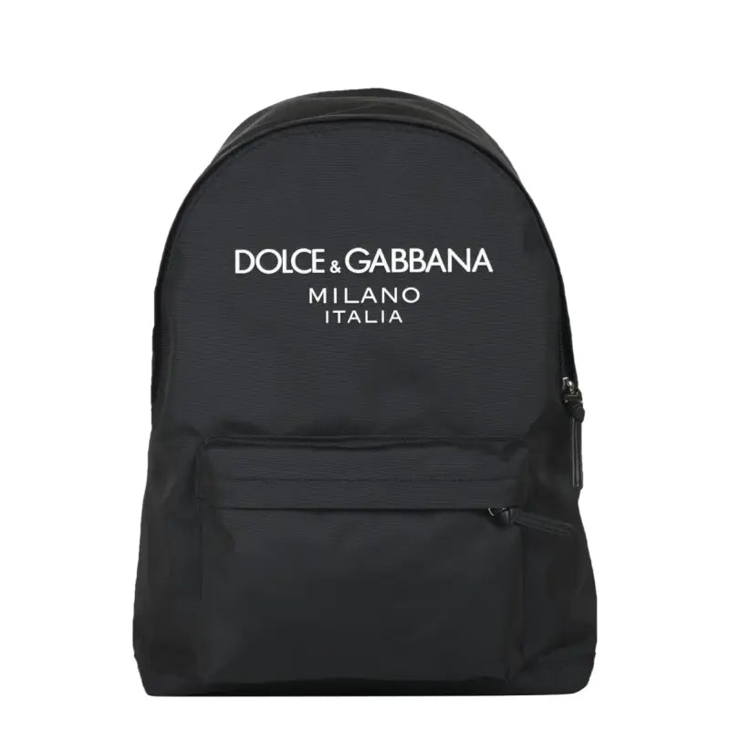 logo-print backpack from DOLCE & GABBANA KIDS featuring black/white, cotton blend, logo print to the front, top zip fastening, front zip-fastening compartment, single top handle and adjustable shoulder straps.