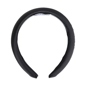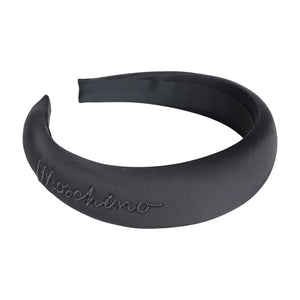 A Chic, Black Satin-Finish Headband By Moschino Featuring A Padded Silhouette For Volume And Comfort, With The Brand'S Logo Embroidered Subtly On The Side. A Stylish Accessory To Elevate Any Look.