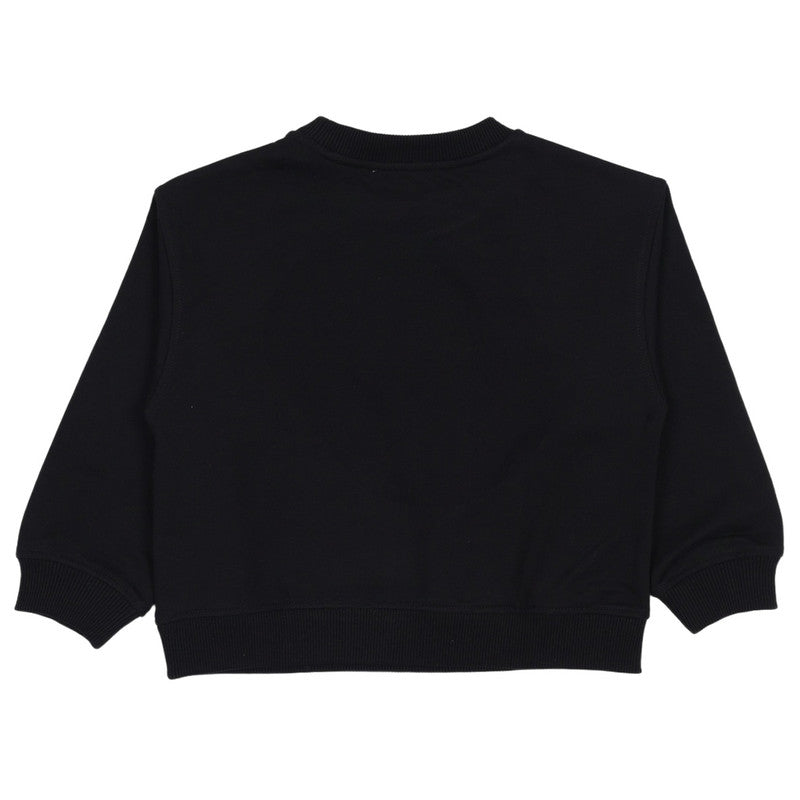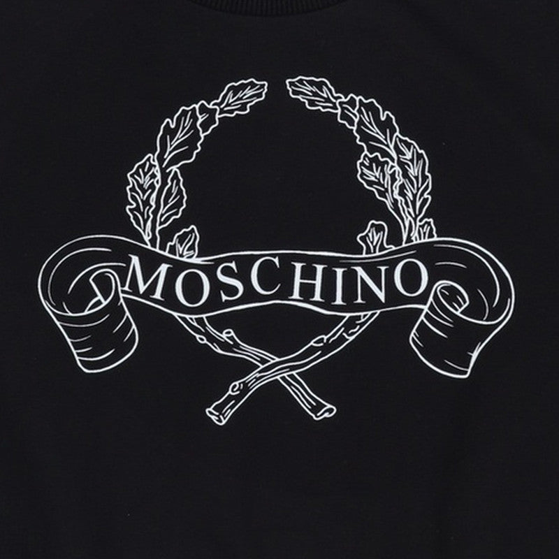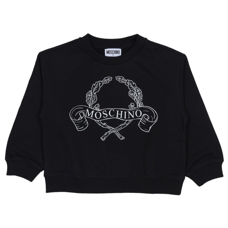 Moschino Kids Black Sweatshirt Featuring An Archival Print Design. Detailed With A Classic Neckline, Ribbed Knit Cuffs, And Bottom Hem, It Blends Comfort With Timeless Style For Versatile Everyday Wear.