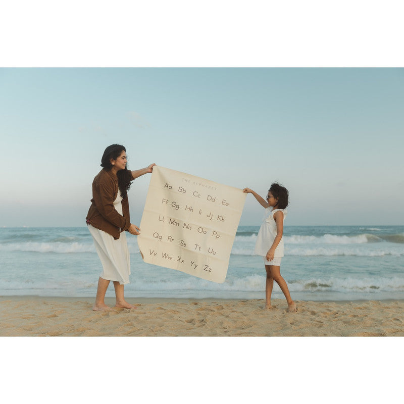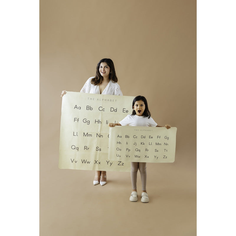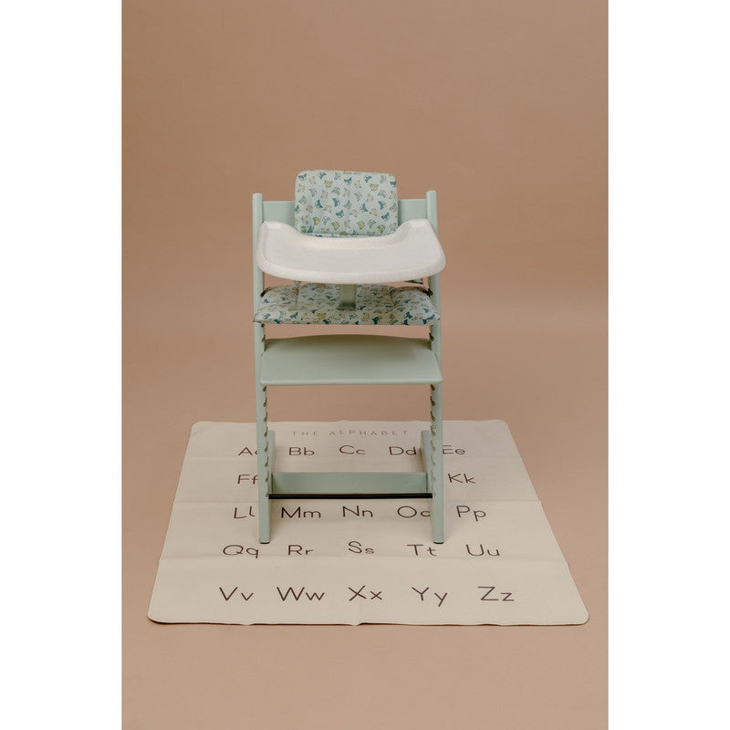Ethically crafted with sustainable vegan leather. Water and stain-resistant. PVC and lead-free. Baby-safe and GOT certified. Multi-use mat for feeding, play, and learning. Alphabet design promotes early literacy and curiosity. Easy to clean and travel-friendly.