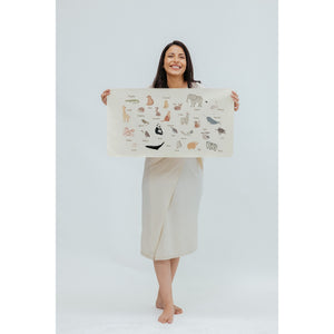 Ethically crafted with premium vegan leather. Water and stain-resistant. PVC and lead-free. Baby-safe and GOT certified. Portable mat for meals, play, or changes. Animal alphabet theme supports early learning.