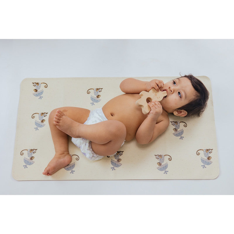 Ethically crafted with premium vegan leather. Water and stain-resistant. PVC and lead-free. Baby-safe and GOT certified. Foldable and easy to clean. Monk-archy design inspires imagination and playful engagement.