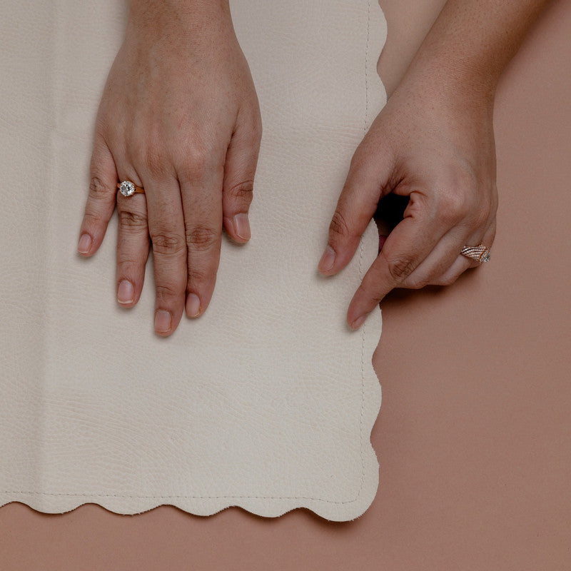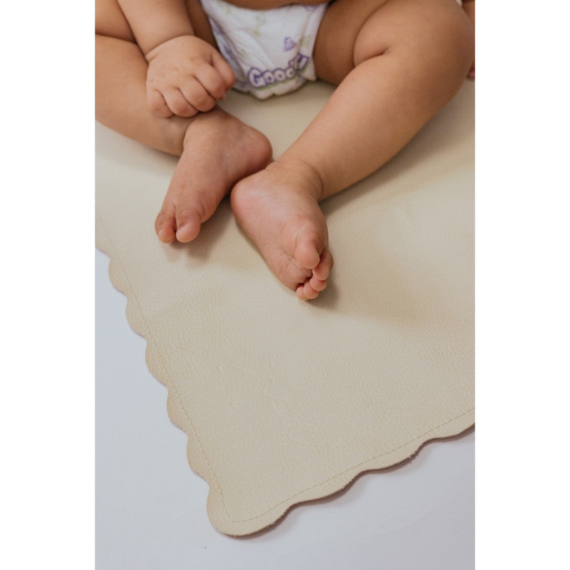 Ethically crafted with a premium feel. Sustainable vegan leather made from fruit skin and cork with cotton backing. Water and stain-resistant. PVC and lead-free. Baby-safe and GOT certified. Compact, foldable, and versatile—ideal for diaper changes, snacks, or travel. Easy to clean.