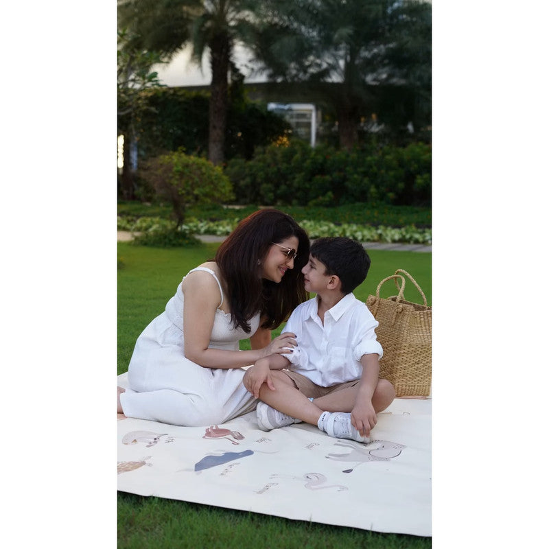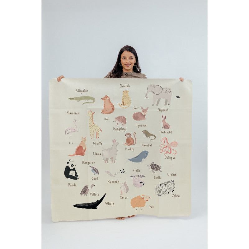 Ethically crafted with premium vegan leather. Water and stain-resistant. PVC and lead-free. Baby-safe and GOT certified. Large multi-use mat for play, learning, and creativity. Animal alphabet design supports early education and imagination.