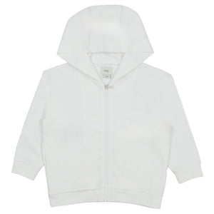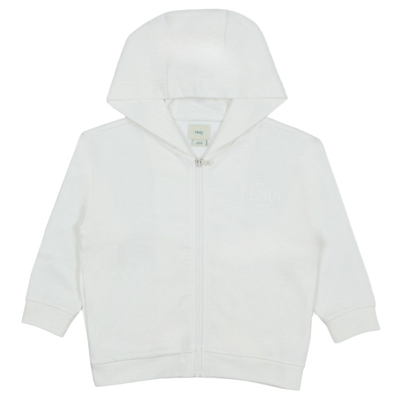 Classic white zip-up hoodie crafted for comfort, featuring a subtle, tone-on-tone embossed Fendi Roma logo on the chest.